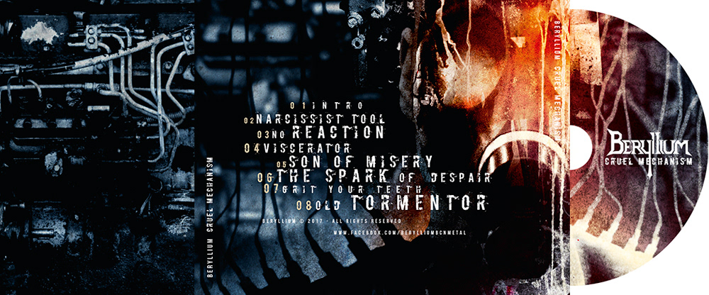 Here is the artwork, merch & layout I did for metallers BERYLLIUM (Spain) new album "Cruel Mechanism"