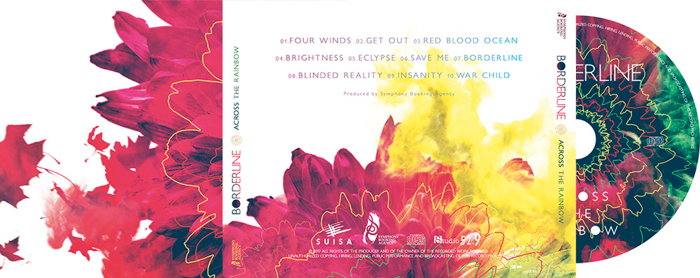 Here is the artwork, poster, layouts and merch I did for rock act BORDERLINE (Switzerland) new album "Across The Rainbow"