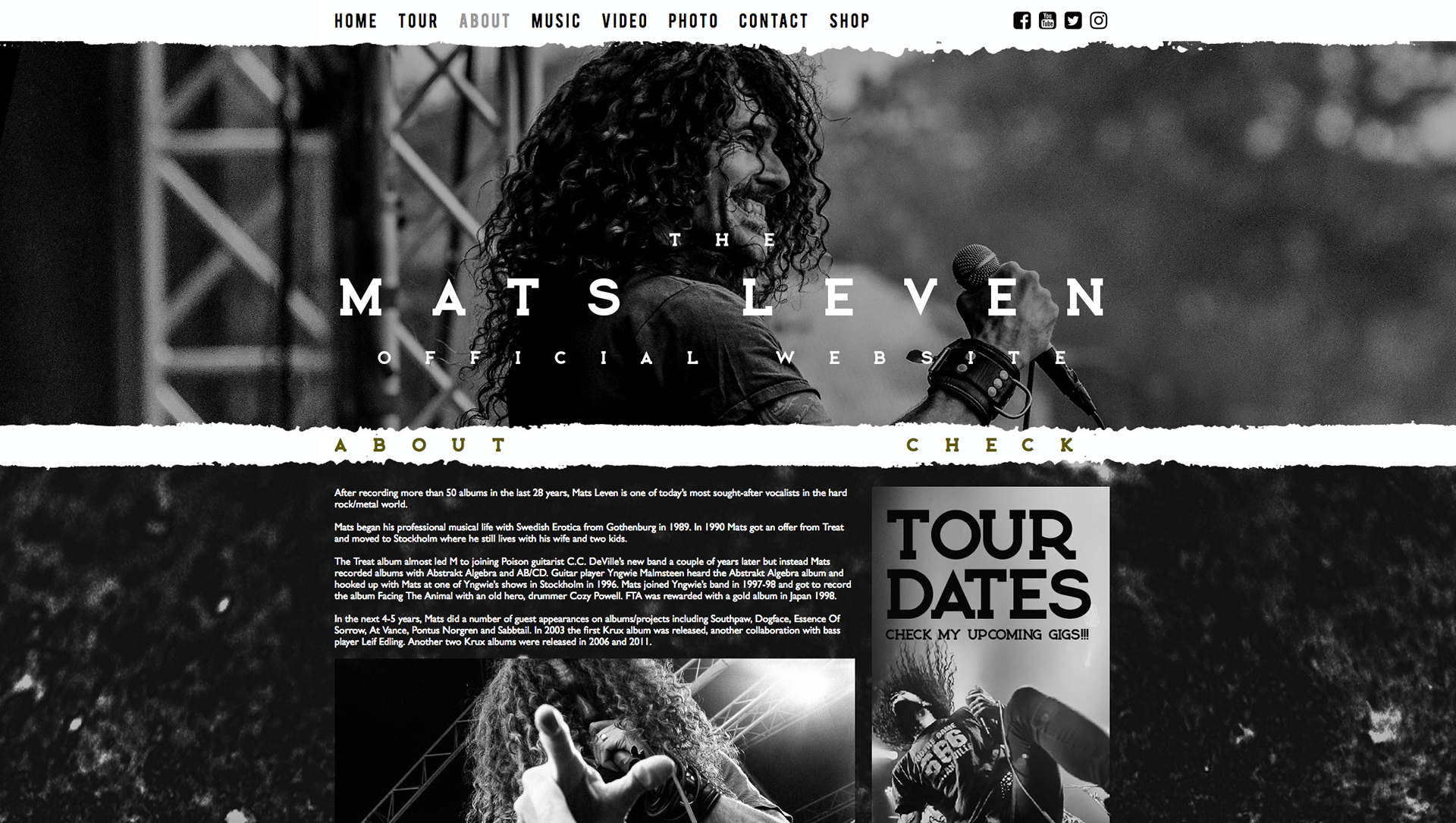 Here is the website layout I did for legendary metal singer MATS LEVEN (Sweden)