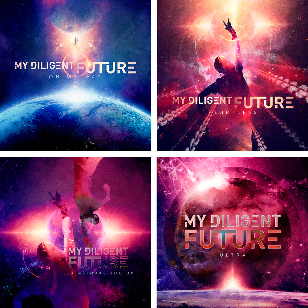 Here are the cover artworks I did for modern metal act MY DILIGENT FUTURE (Sweden) new album "Chasing The Heavens" and digital singles.