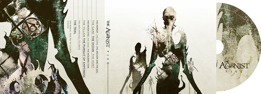 Here is the artwork, layouts and merch I did for the modern metallers THE AGONIST (Canada) album "Five".